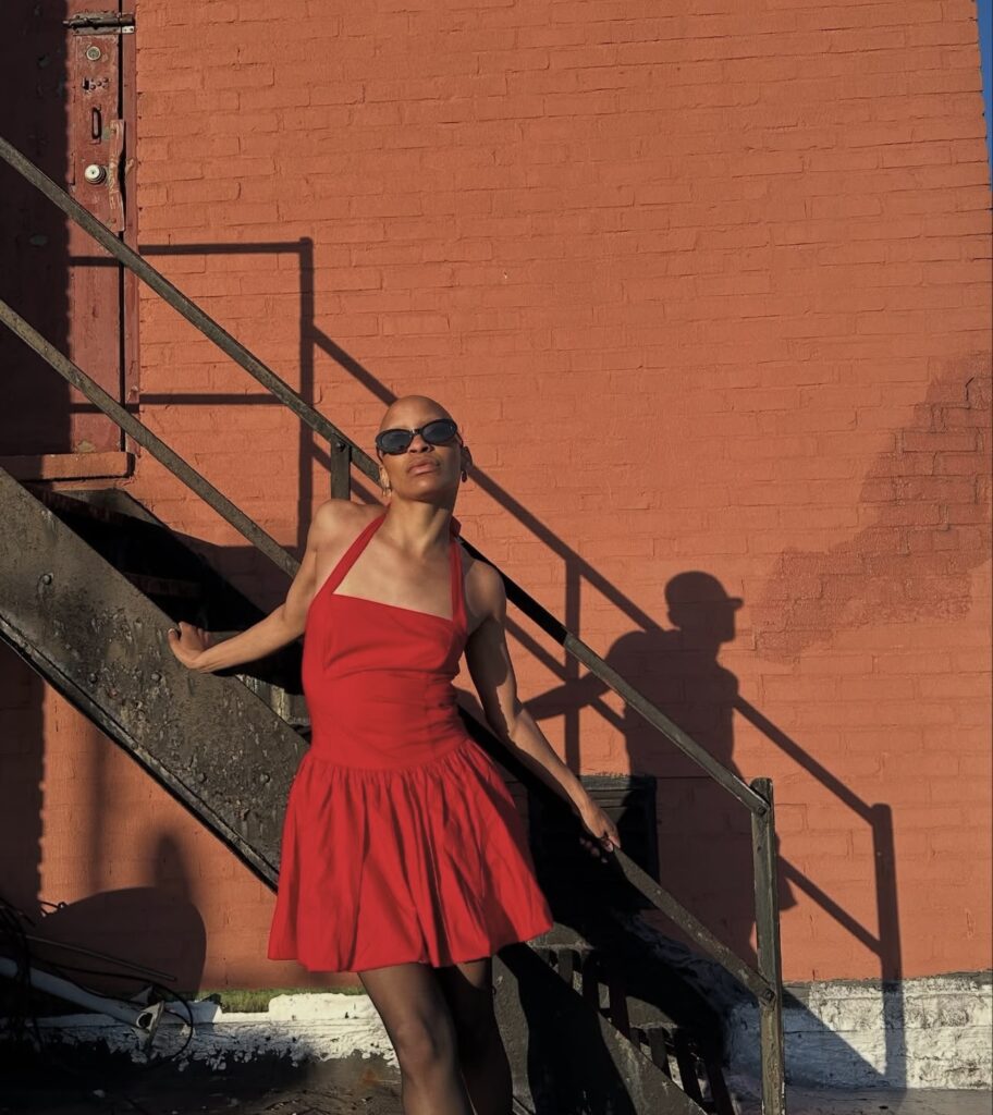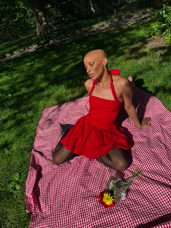 I got a makeup wipe, wiped it off, ran out of the door, and felt really self-conscious about it but then it wasn’t the end of the world. It didn’t matter. No one cared. And I was like okay, I’m never going to do that again, that’s when I stopped doing that[drawing on eyebrows]. That’s that! So fully embracing the fact that I am bald. I am a woman. I am going to have to encounter people being like, ‘God bless you’, or , ‘I’m praying for you’; because they assume that I have cancer or some sort of disease; which technically I do- but thankfully it’s not something fatal. Being able to embrace myself fully and not wear wigs, for such a long time..I’m not wearing wigs for any sort of role, any sort of gig. You take me as I am or you don’t need to have me on set.”
